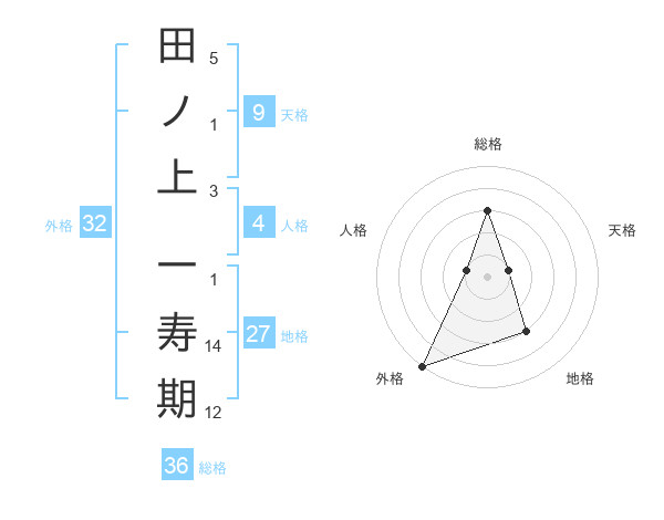 田ノ上 一寿期さんの外格は32画の5点!