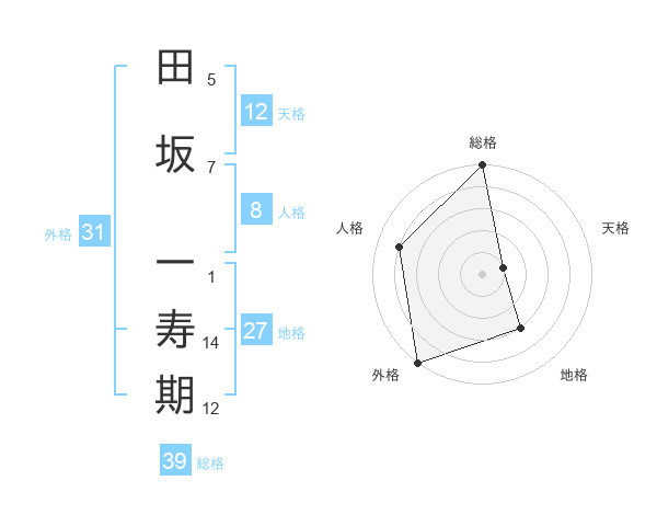 田坂 一寿期さんを姓名の画数から五運を鑑定