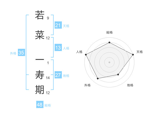 若菜 一寿期さんの総格は48画の4点!