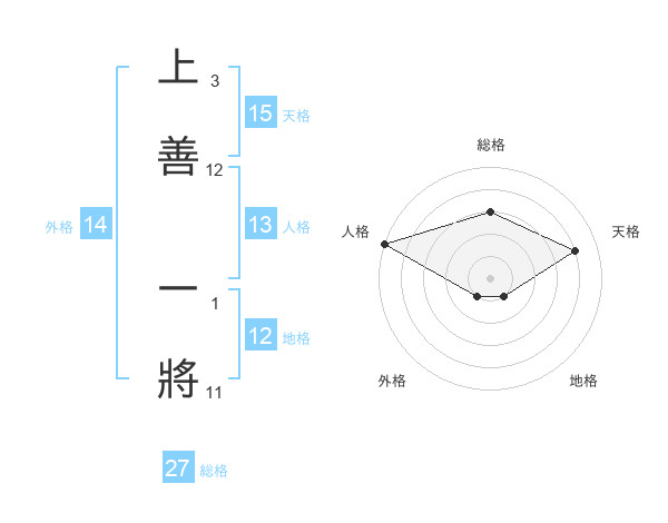 上善 一將さんの地格は12画の1点!