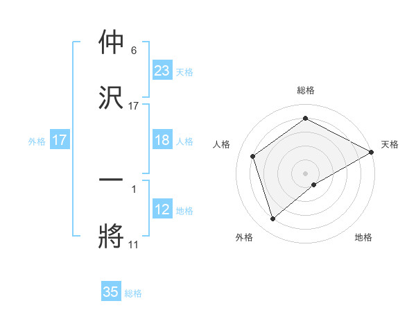 仲沢 一將さんの天格は23画の5点!