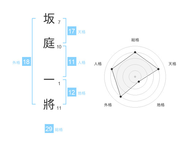 坂庭 一將さんの総格は29画の4点!