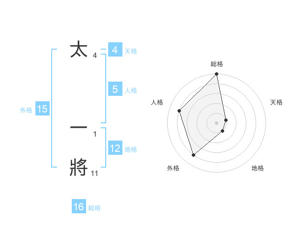 太 一將さんの総格は16画の5点!