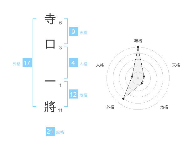 寺口 一將さんの総格は21画の5点!