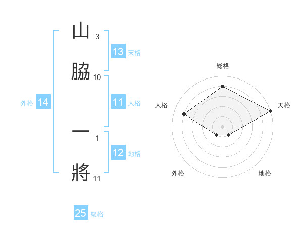 山脇 一將さんの天格は13画の5点!