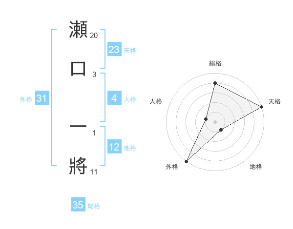 瀬口 一將さんの天格は23画の5点!