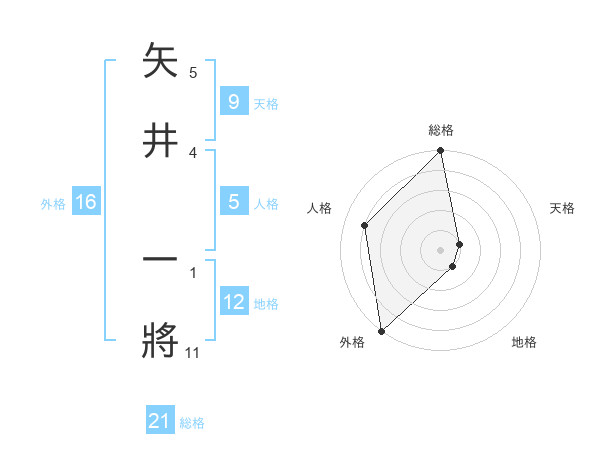 矢井 一將さんの総格は21画の5点!
