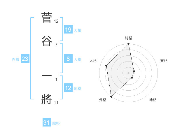 菅谷 一將さんを姓名の画数から五運を鑑定