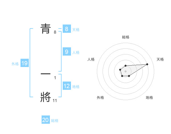 青 一將さんの総格は20画の1点!