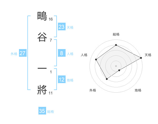 鴫谷 一將さんを姓名の画数から五運を鑑定