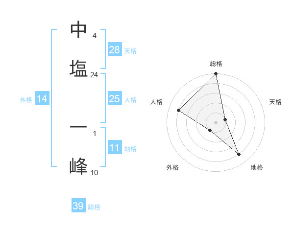 中塩 一峰さんの総格は39画の5点!