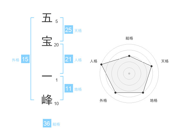 五宝 一峰さんを姓名の画数から五運を鑑定