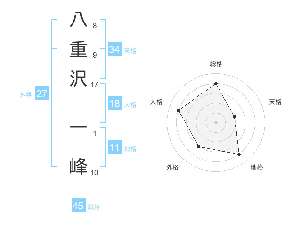 八重沢 一峰さんの総格は45画の4点!