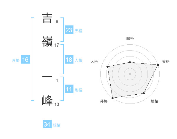 吉嶺 一峰さんを姓名の画数から五運を鑑定