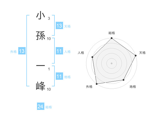 小孫 一峰さんを姓名の画数から五運を鑑定