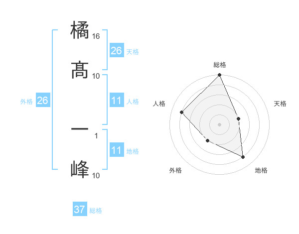 橘髙 一峰さんを姓名の画数から五運を鑑定