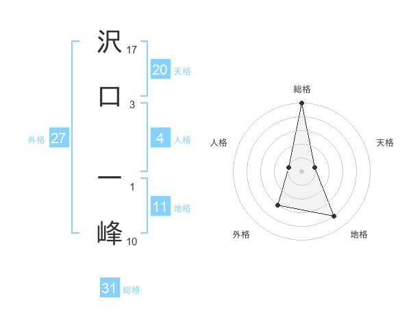 沢口 一峰さんを姓名の画数から五運を鑑定