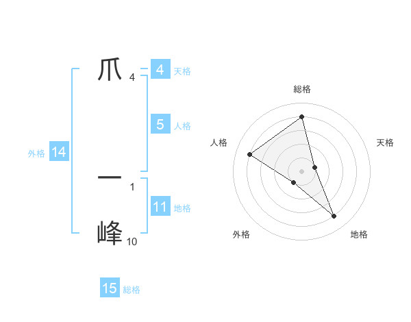爪 一峰さんの総格は15画の4点!