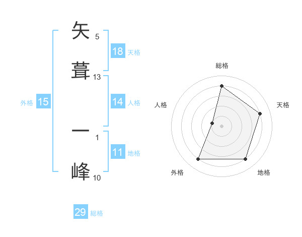 矢葺 一峰さんの総格は29画の4点!