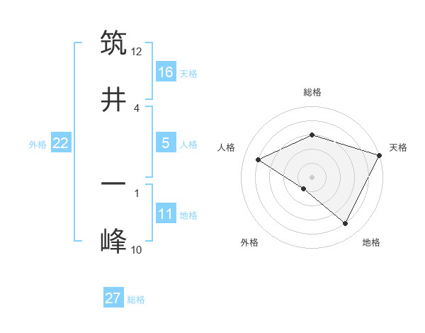 筑井 一峰さんの天格は16画の5点!