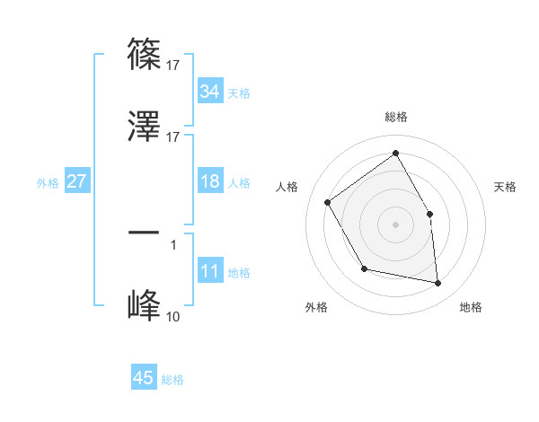 篠澤 一峰さんの総格は45画の4点!