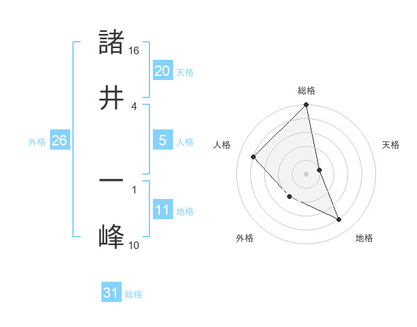 諸井 一峰さんを姓名の画数から五運を鑑定