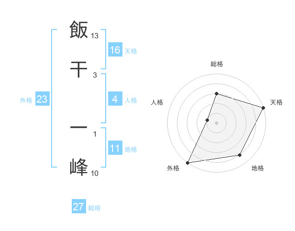 飯干 一峰さんを姓名の画数から五運を鑑定