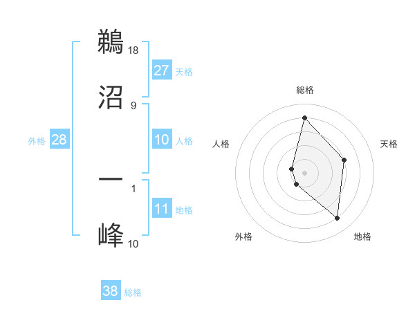 鵜沼 一峰さんを姓名の画数から五運を鑑定