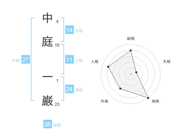 中庭 一巌さんの総格は38画の4点!