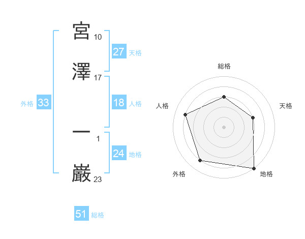 宮澤 一巌さんを姓名の画数から五運を鑑定