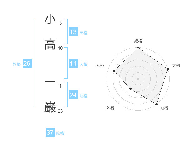 小高 一巌さんの総格は37画の5点!