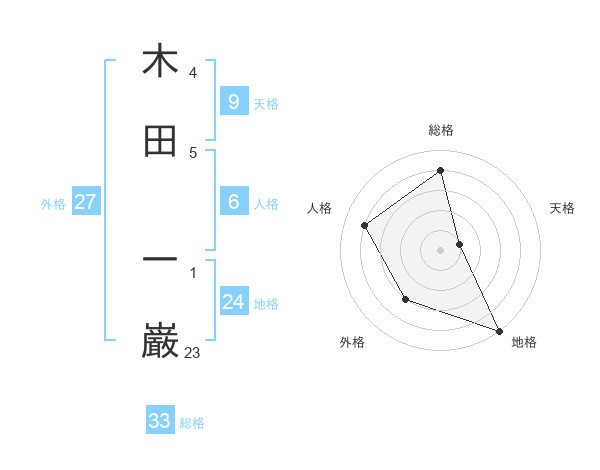 木田 一巌さんの総格は33画の4点!