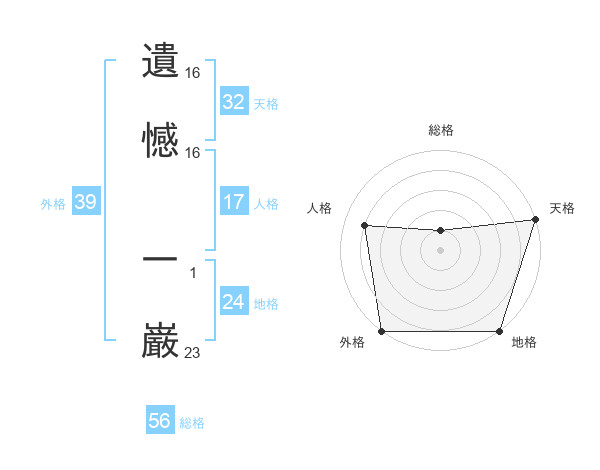 遺憾 一巌さんの外格は39画の5点!