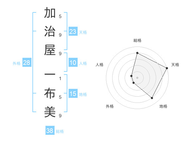 加治屋 一布美さんを姓名の画数から五運を鑑定