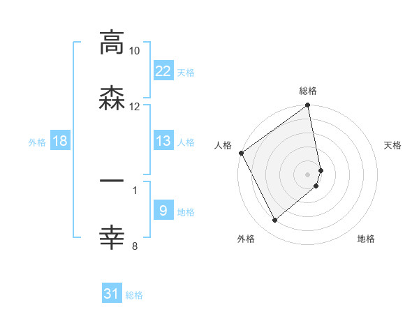 高森 一幸さんの総格は31画の5点!