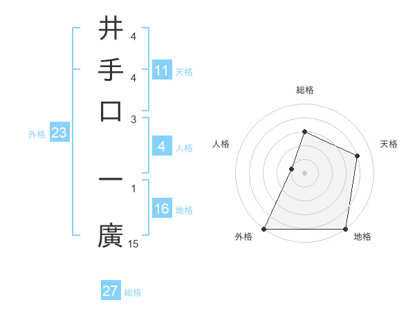 井手口 一廣さんの総格は27画の3点!