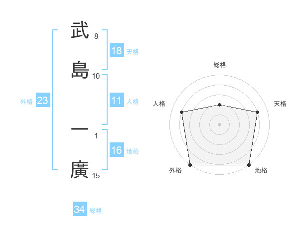 武島 一廣さんを姓名の画数から五運を鑑定