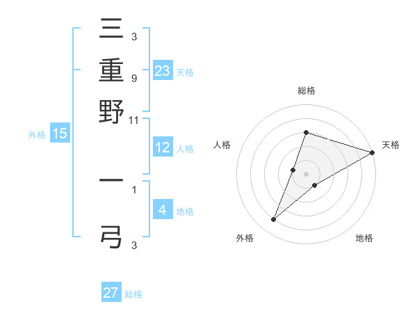 三重野 一弓さんを姓名の画数から五運を鑑定