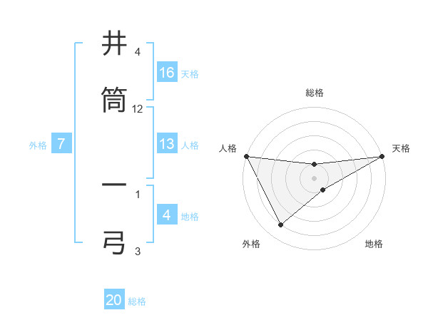 井筒 一弓さんの総格は20画の1点!