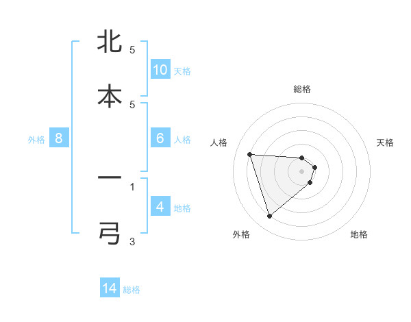 北本 一弓さんの天格は10画の1点!