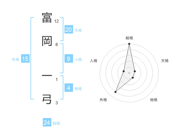 富岡 一弓さんの天格は20画の1点!