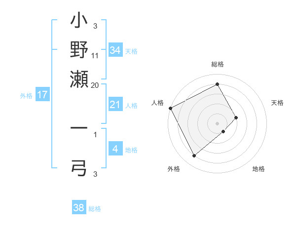 小野瀬 一弓さんの総格は38画の4点