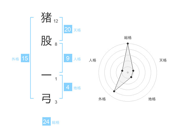 猪股 一弓さんを姓名の画数から五運を鑑定