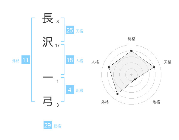 長沢 一弓さんを姓名の画数から五運を鑑定