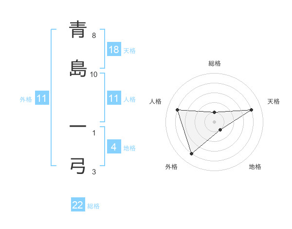 青島 一弓さんの総格は22画の1点!