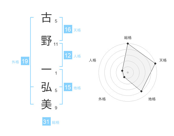 古野 一弘美さんを姓名の画数から五運を鑑定