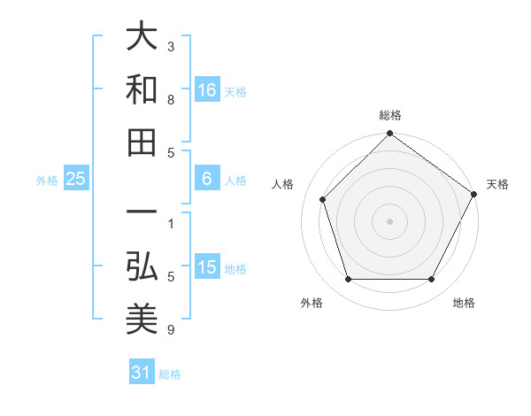 大和田 一弘美さんを姓名の画数から五運を鑑定