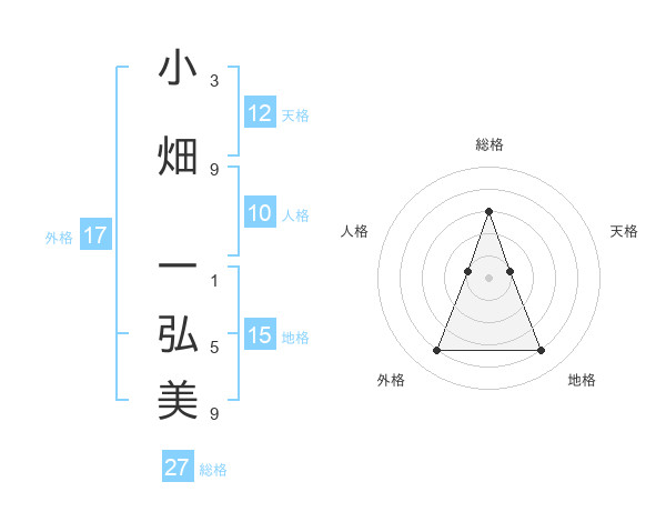 小畑 一弘美さんの総格は27画の3点!