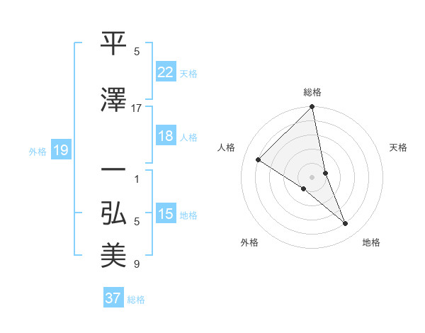 平澤 一弘美さんの総格は37画の5点!