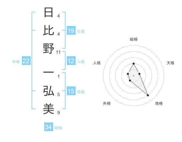 日比野 一弘美さんを姓名の画数から五運を鑑定